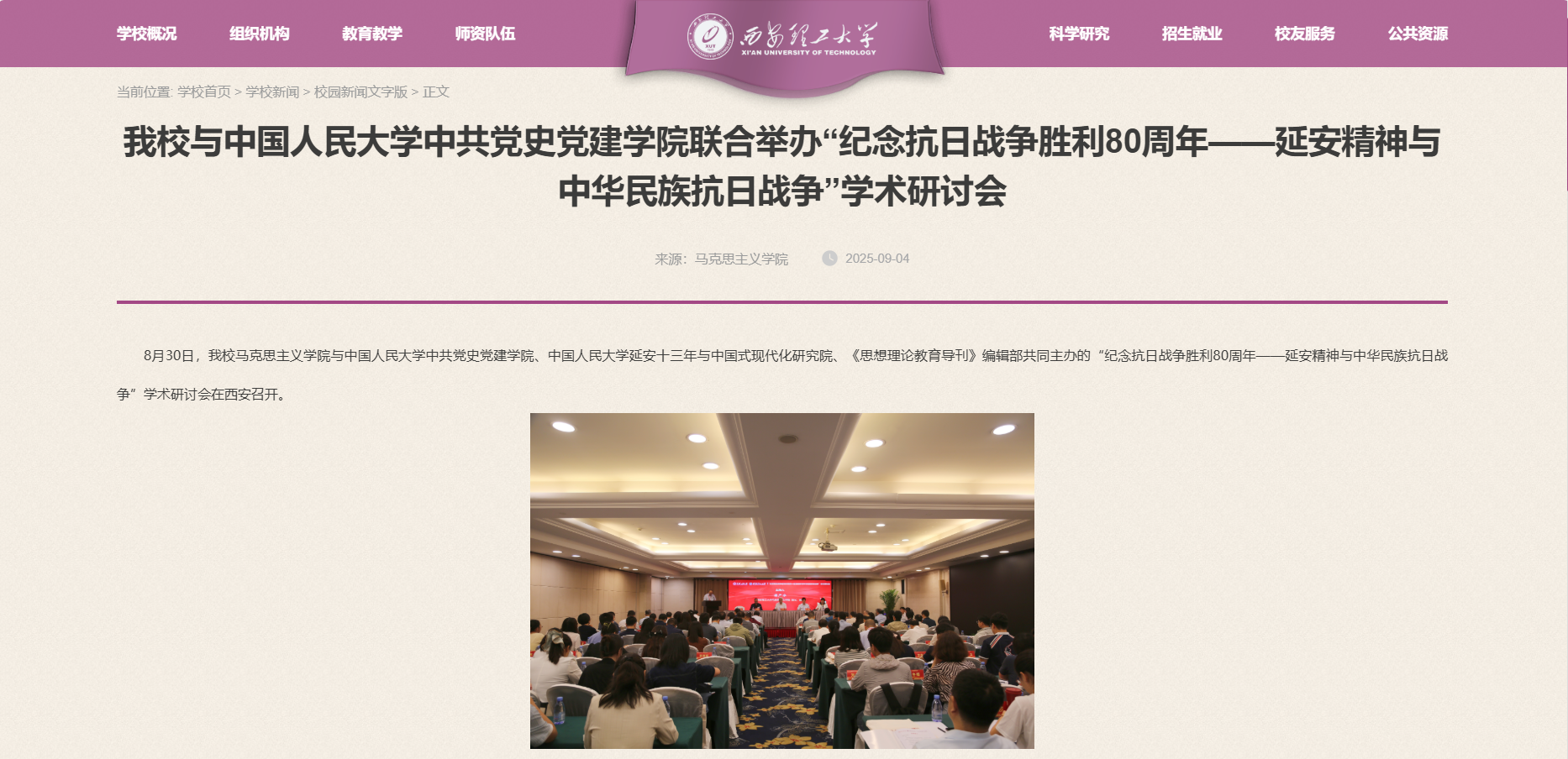 会议名称:“纪念抗日战争胜利80周年——延安精神与中华民族抗日战争”学术研讨会