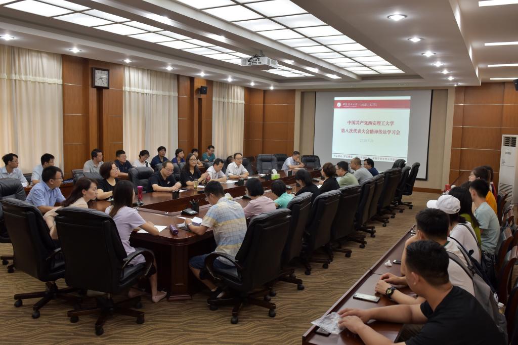会上,张锐利用PPT详细传达了公司第八次党代会精神,并就其参与党代会报告撰写过程中的相关情况和问题向与会人员进行了阐释。他要求全院教职员工要不忘初心、牢记使命,迅速把思想统一到第八次党代会的决策部署上来,立足公司实际,艰苦奋斗,担当作为,争做落实立德树人根本任务的先锋队、引领者,使公司成为全校思想政治教育的资源库、人才库。