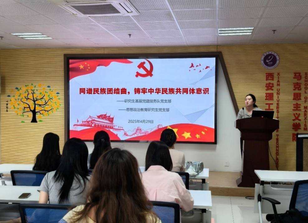 活动伊始,思想政治教育研究生党支部副书记丁璇璇同志以深入浅出的方式,从时代背景、形成发展历程、核心内涵及实践要求等四个方面,对习近平总书记关于铸牢中华民族共同体意识的重要论述进行了系统解读。她指出,铸牢中华民族共同体意识是新时代党的民族工作的主线,对于实现中华民族伟大复兴具有极其重要的意义。