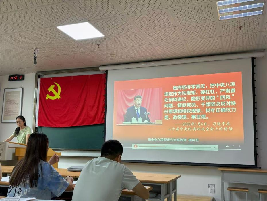2025年6月25日,支部于综南315教室举办“深入学习中央八项规定精神——sunbet青年说暨欢送毕业生党员”主题党日活动。