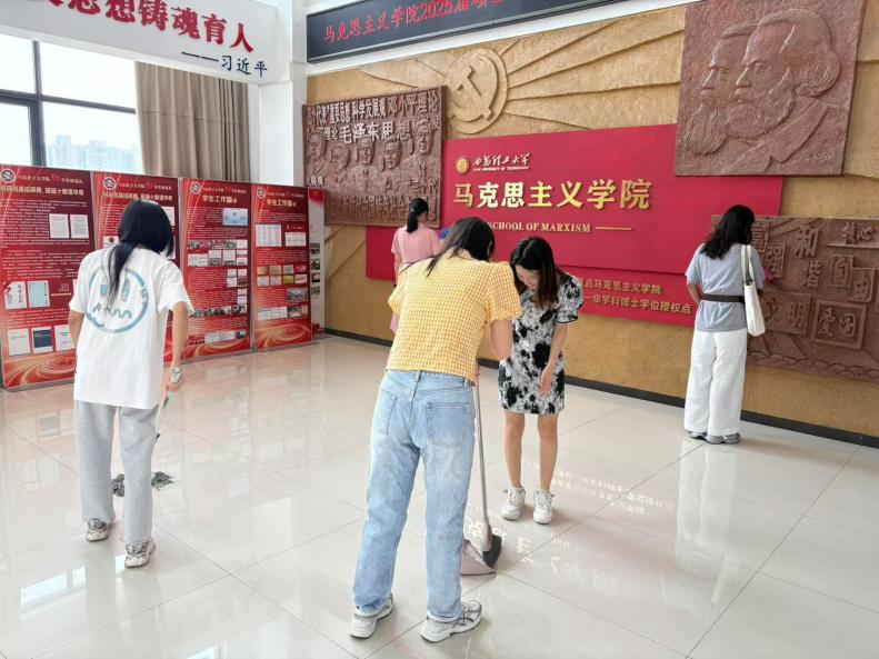 离校前夕,支部毕业生党员们自发组织起来,主动打扫“红色会客厅”,大家不仅清洁了公司环境,也在劳动中重温了光荣革命传统,以实际行动诠释了党员的责任与担当。
