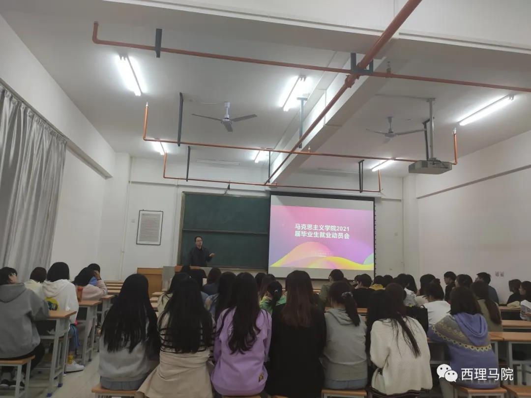 王梦为大家讲解了毕业生就业形势。她利用客观详实的数据资料,细致认真的与在座学子回顾与分析了近年来陕西省多所高校sunbet毕业生就业总体形势,公司不同专业毕业生就业岗位与就业区域分布。她指出,近年来,国家对于马克思主义学科的大力建设对公司毕业生求职是十分有利的,公司学子要把握时机,抓住机遇,培养技能,适时就业。
