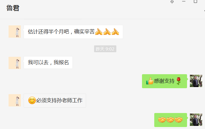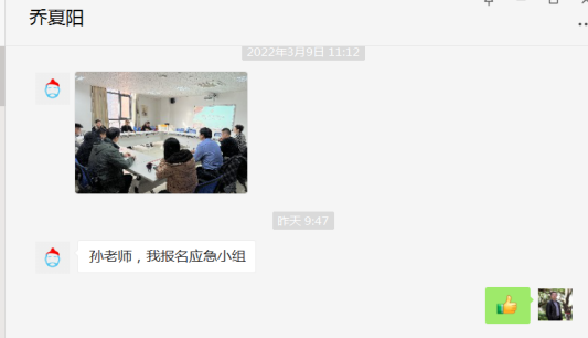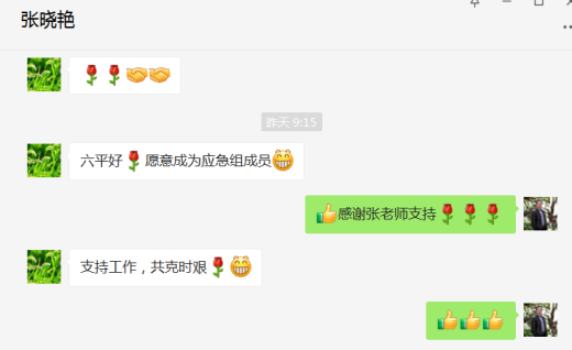 因疫情防控需要,公司组织成立校外教师应急小组,保证校内员工遇到突发情况时的应急处置,公司教师纷纷响应号召积极报名。班子成员率先参与,短短时间内,数十名教师加入到应急小组中。学科带头人史向军老师主动请缨到战“疫”前线,刚入职的王卫老师热情的说到,“在组织需要的时候立刻到位”。张晓艳、闫昕、鲁君、郝丹梅、乔夏阳等众多老师收到通知后,毫不犹豫提出申请。