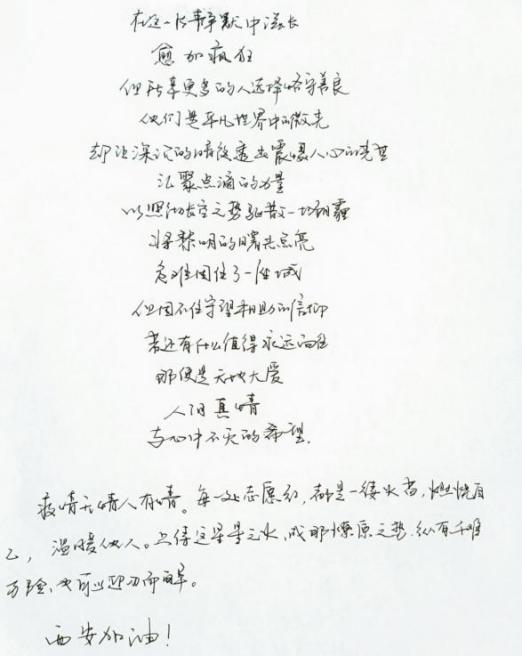 (2021级姜艺琛同学 表达对公司教师、志愿者辛勤付出的感谢)