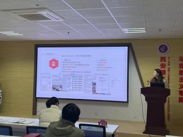 武美妤分别从组织结构、思想引领、学术领航、文体活动、志愿服务等五个方面,就公司研究生会2021-2022年工作开展情况及取得成绩做简要汇报。随后,7位轮值主席候选人通过线上、线下相结合的方式,分别从工作经历、未来规划、个人收获等三个方面依次进行竞选发言。
