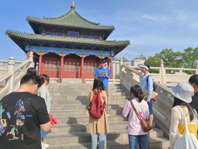 在实地考察交流阶段,同学们在主持人的带领下一同来到西安兴庆宫参观。在游览过程中,李新雁以兴庆宫历史为着力点讲解了唐代的历史和文化,加深了同学们对唐代社会历史风貌和治理文化的了解。钱鑫和沈瑶涵也在兴庆宫参观过程同大家分享了他们对唐代社会治理制度与文化的理解和学习心得。同学们在学思践悟中提升了对历史文化的认识,有利于同学们在对历史的深入思考中汲取智慧、走向未来。