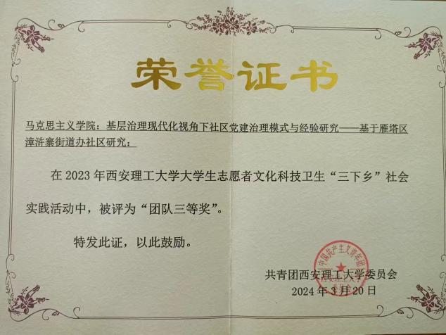 杨怡雪曾担任sunbet新时代基层党建服务队副社长,致力于将所学理论知识应用于基层社区发展。在西安市雁塔区漳浒寨街道办下属10余个社区积极调研社区党建治理新模式,与同学一起完成“基层治理现代化视角下社区党建治理模式与经验研究——基于雁塔区漳浒寨街道办社区研究”的社会实践,并荣获sunbet官方网站老员工“三下乡”社会实践活动三等奖。